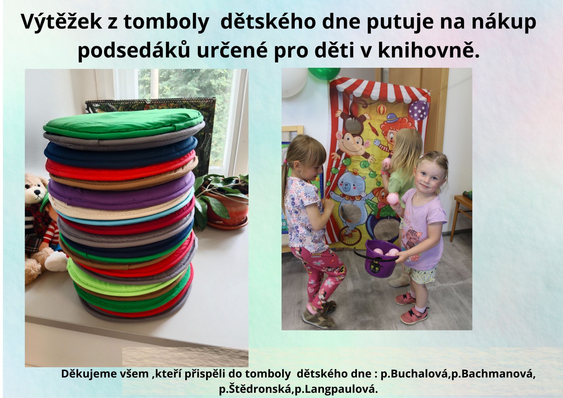 Dne 2. června proběhl v knihovně dětský den, děti si užily soutěže, zábavu a bohatou tombolu. Děkuji všem , kteří přispěli do tomboly. Dětem se moc líbila.