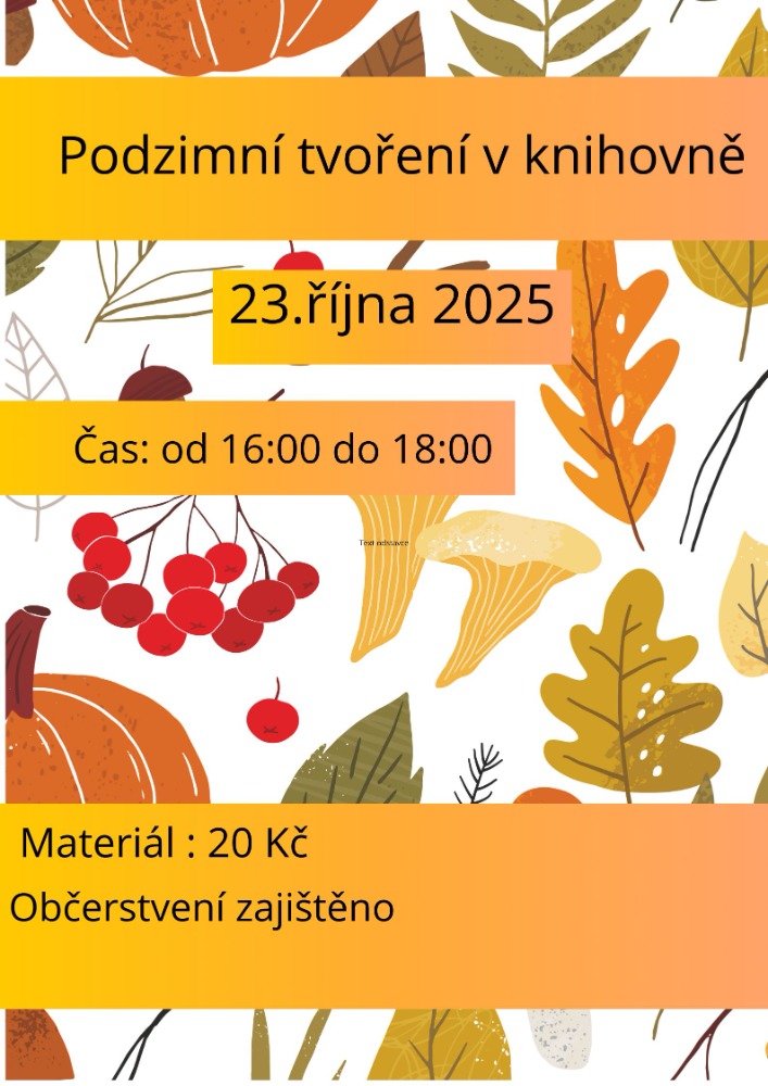 Dne 12.10.2021 se v místní knihovně uskuteční podzimní tvoření, vyrobíme si ježka, materiál je zajištěn.